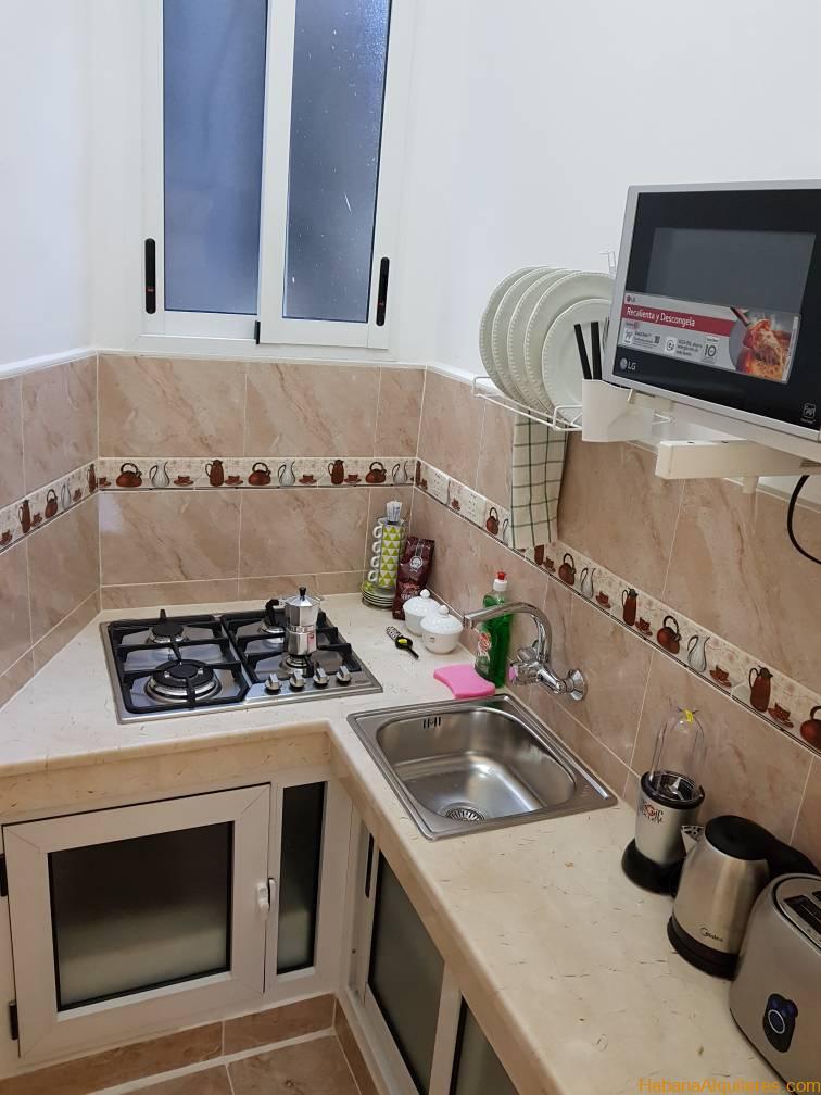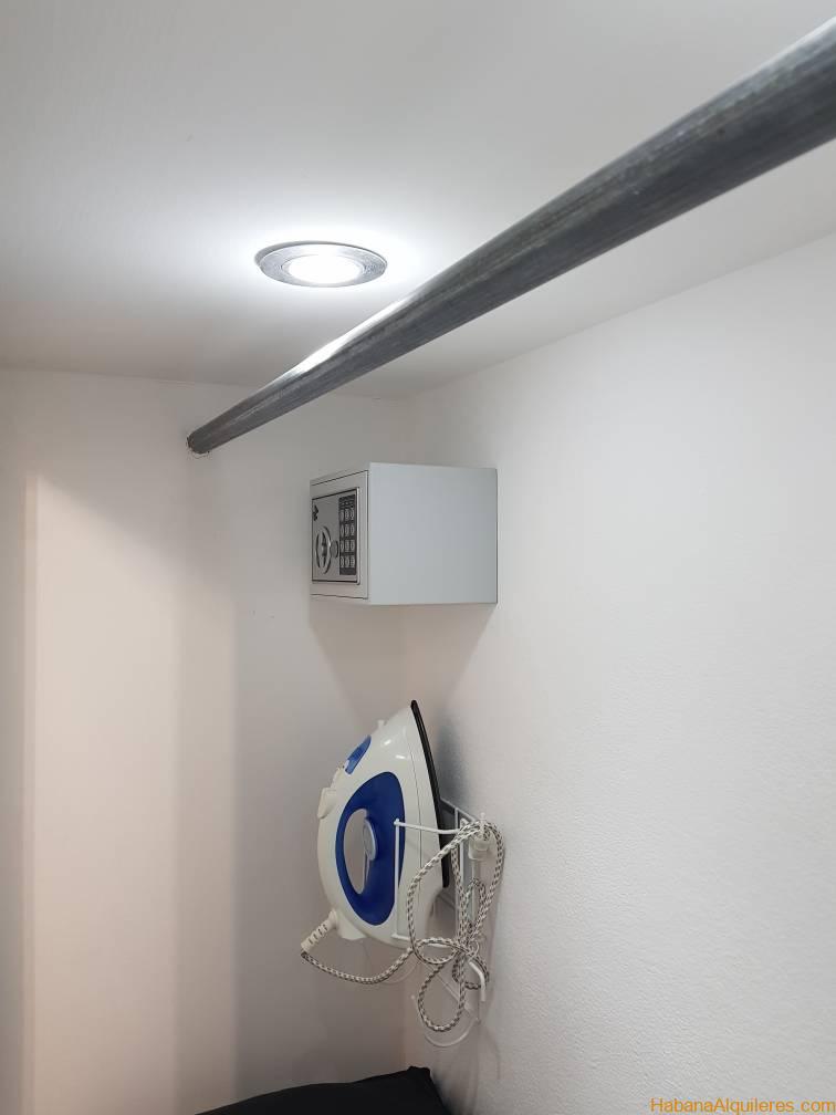 Céntrico y cómodo apto en el vedado.sala,cocina equipada con todos los servicios, baño, agua fría y caliente, minibar, servicio de caja fuerte, aire acondicionado, TV, teléfono fijo, cama King size